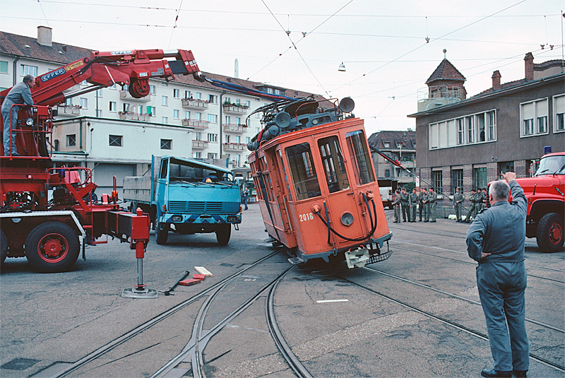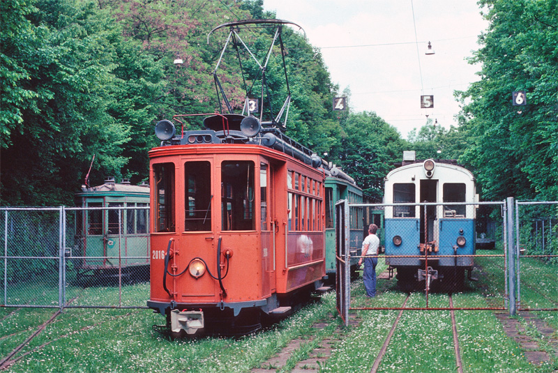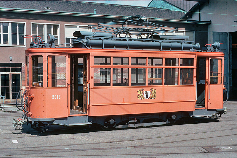 Aus dem ehemaligen Be 2/2 172 mit Druckluftbremse wurde der Rangier-Motorwagen Xe 2/2 2016 für die Hauptwerkstätte Klybeck. Am 17. Mai 1989 hilft er beim Umstellen von Fahrzeugen des Tramclub Basel in der Abstellanlage Eglisee.