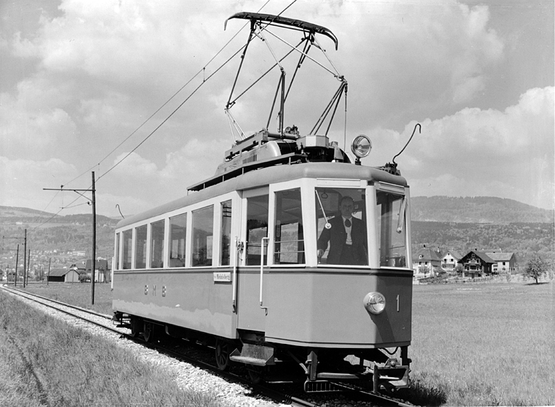 Ce 4/4 1 der Biel–Meinisberg-Bahn (BMB) – erster Motorwagen mit Simplex-Drehgestellen von Brown, Boveri & Cie. Der Wagenkasten mit den beiden Endführerständen war von der Schweizerischen Industrie-Gesellschaft (SIG) erbaut worden. Dem Ce 4/4 1 war nur eine kurze Einsatzzeit in Biel beschieden. 1940 wurde der Betrieb der BMB eingestellt und der Wagen an die Lugano–Cadro–Dino-Bahn (LCD) veräussert.