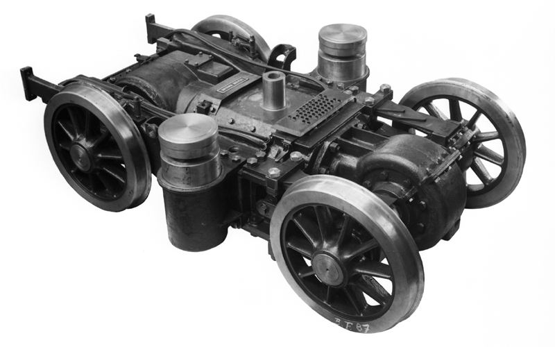 Nicht aus der Spielwaren-Abteilung, sondern aus der Eisenbahn-Ausstellung bei Jelmoli: Simplex-1-Drehgestell für die Zürcher Leichtmotorwagen Ce 4/4 401 ff.