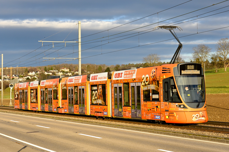 Strassenbahn-Motorwagen mit Ganzwerbung sind bei der Baselland Transport AG (BLT) erst seit der Jahrtausendwende üblich.